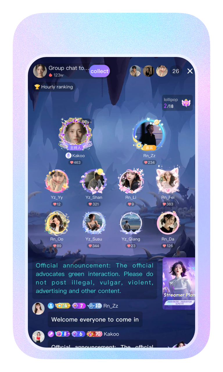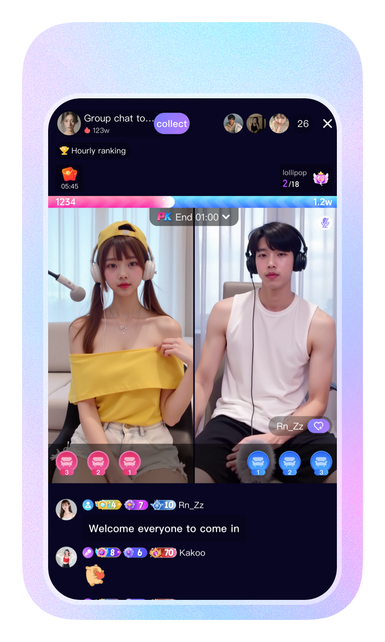 Music & Dance, Live PK with Gifts, Non-stop Fun